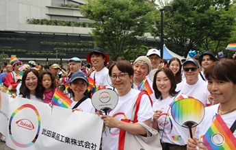 東京レインボープライドのパレードには、武田薬品を含む製薬企業の従業員リソースグループのネットワークPharma Ally Japanに加盟する、グラクソ・スミスクライン、日本イーライリリー、ブリストル・マイヤーズ スクイブの従業員らも前後に並ぶ形でパレードに参加。企業の枠を超えて連携しながら、沿道の声援に応える様子が見られた。
