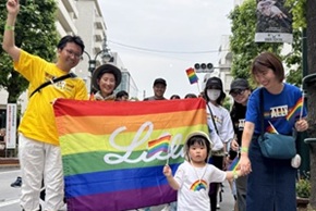 この日は、ともにLGBTQ+の活動を行う、日本イーライリリー、グラクソ・スミスクライン、ブリストル・マイヤーズ スクイブも、パレードに並んで参加した。グラクソ・スミスクラインのポール・リレット代表取締役社長の姿もあり、従業員とその家族らとともに、沿道の声援に応えていた。