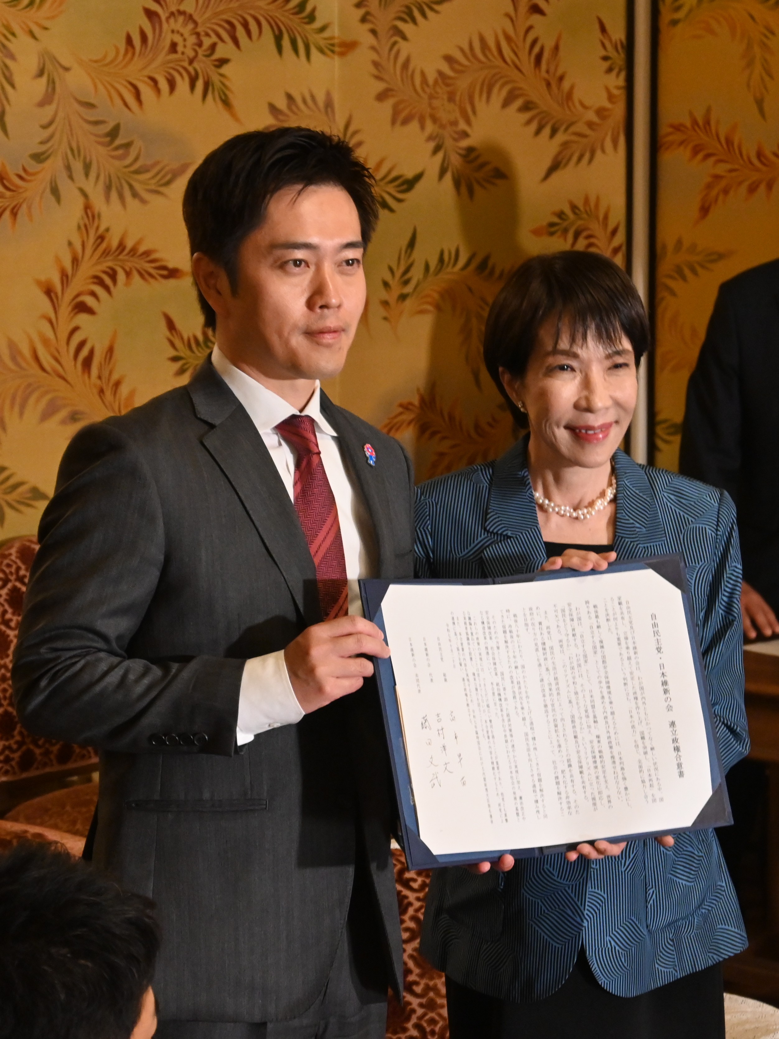 自民党の高市早苗総裁と日本維新の会の吉村洋文代表は10月20日、連立政権の樹立を正式合意した。21日に開かれる臨時国会の総理大臣指名選挙では一致して高市総裁に投票することも合わせて確認した。両党の政権合意書では、社会保障政策について、自民・公明・維新の「3党合意」に基づく医療制度改革の制度設計を2025年度中に実現することや、社会保障改革に関する協議体の定期開催などが盛り込まれた。また、OTC類似薬を含む薬剤自己負担の見直しなど、給付と負担に関する事項や、創薬機能の強化、物価高騰で赤字化が進む病院・介護施設の経営改善に取り組む方針も明記した。
