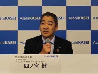 四ノ宮健専務執行役員兼旭化成ライフサイエンス代表取締役兼社長執行役員は、医薬・ライフサイエンスとクリティカルケアを含むヘルスケア領域について、「2030年に営業利益1500億円を目指し、旭化成の成長を支える大きな柱の一つとなることを目標としている」と述べた。医薬事業は、「ホームラン狙いではなく、ヒットを積み重ねるビジネスモデル」と表現し、ブロックバスターを狙わずに、専門医の限られる希少疾患に絞ることで、小規模な臨床試験・MR活動などにとどめ、営業費用を抑えて開発に投資する構造だと説明した。