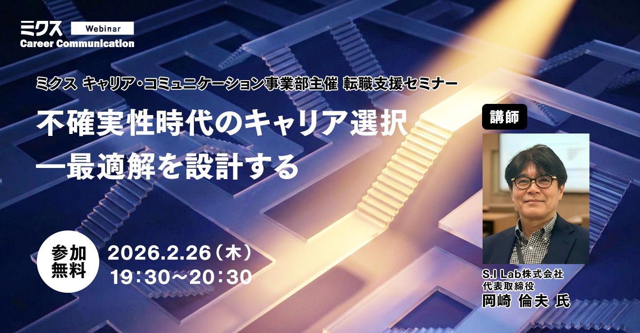 かつてないほどの時代の変革期を迎え、誰もが自分のキャリアを考えなくてはならない時期です。正解のないキャリア選択において、最適解を導き出すコツをお伝えします。予測不能な時代により同質化が進む中、因果の視点で解像度を高め、自分にとっての最適解を見つけましょう。