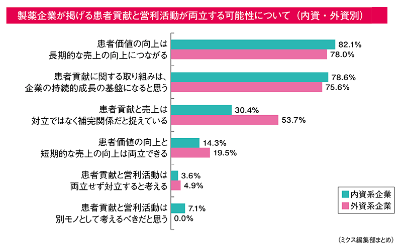 ミクス調査 8割が「患者価値向上は長期的売上に」 患者貢献と売上は対立でなく補完関係 外資系で強く