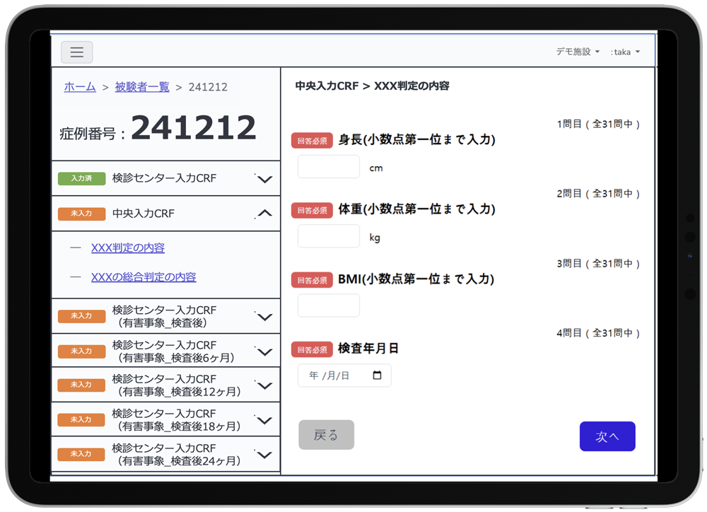 - eVisitCheck(電子ビジットチェックシート)と統合し、来院受付からデータ入力までをシームレスに連携