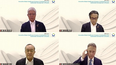 奥澤社長は、今回の修正により、第5期中計の最終年度となる25年度の5つの数値目標のうち、▽売上高(2兆円)、▽がん領域売上高(9000億円)、▽ROE(16%以上)、▽DOE(8.5%以上)―の4つの達成に自信を示した。残るR&D費控除前コア営業利益率(40%)については、「若干未達となる見込み。引き続き改善を図っていく」と述べた。
