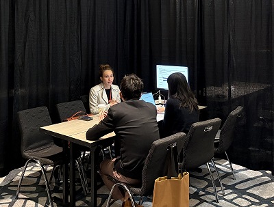 ピッチイベントは、ホテルの大広間を黒いカーテンで仕切った机一つの小さなスペースで行われる。VCやCVCのもとを、緊張した面持ちのスタートアップの代表者が訪れる。1社あたりの面談時間は25分。限られた持ち時間の中で、自社の創薬技術をアピールしようと真剣な眼差しでプレゼンに臨むスタートアップの姿と、時に前のめりでプレゼン資料を映し出したPC画面をのぞき込むVCやCVCの姿があった。