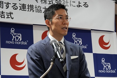ノボ ノルディスクファーマは4月13日、広島県と「広島県・ノボ ノルディスク ファーマ株式会社による健康寿命の延伸に関する連携協力協定」を締結した。協定書署名に先立ち挨拶したノボ社の小谷啓輔代表取締役社長は、「肥満症は社会的偏見などで、まだしっかり認識されていない疾患だ。そのためには疾患啓発が必要」と強調。「患者さんが(肥満症を)疾患と感じて医療従事者に相談したときに、そこでしっかり治療が受けられる環境を医療従事者の皆様と一緒にパートナーシップを持って作っていくことが大変重要だと思っている」と述べた。