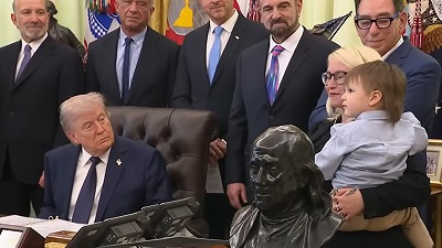 合意に際しリジェネロン社が開発した遺伝性難聴(OTO遺伝子変異)に対する遺伝子治療薬「オタルメニ」について一定期間、無償提供することを公表した。同剤は米国食品医薬品局(FDA)長官の国家優先バウチャープログラムを通じて、前例のない短期間で承認されたもの。この日のブリーフィングには、同剤で治療を受けた2歳児と母親が同席。トランプ大統領が、「奇跡の治療を受けて、お母さんの“愛してる”という言葉を聞くことができるようになった」と話すと、母親は、「本当にすごいことです。まさに奇跡です」と応じる場面もあった。
